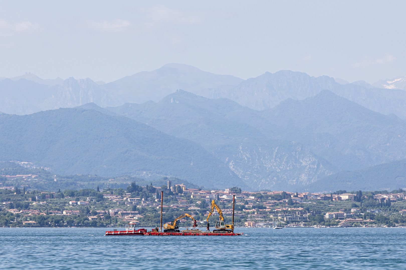 Partendo dal database del biologo norvegese Zander Venter, del centro di ricerca NINA; poi verificato dal team di giornalisti di Green to Gray coordinato da Arena for journalism in Europe, abbiamo individuato una serie di siti in costruzione lungo la costa meridionale del lago. In particolare, ci siamo concentrate sul lato lombardo, influenzate anche dalle cronache di sovraffollamento, tra i comuni di Sirmione e Desenzano, e un mercoledì nel tardo maggio di quest’anno siamo andate a vedere con i nostri occhi di che costruzioni si tratta, assieme ai colleghi del Giornale di Brescia con cui abbiamo collaborato per questo capitolo della nostra storia. Dopo l’exploit del Primo maggio, il flusso turistico era in realtà molto leggero, e l’aria era quella dei preparativi per la stagione in apertura. Abbiamo documentato con fotografie e riprese con droni diversi complessi residenziali, palazzine e villette a schiera, addirittura sorprendentemente dotate di bizzarre piscine individuali, tutte piuttosto nuove o ristrutturate, ben rifinite ma senza negozi, bar, panifici. Oltre a queste case, perlopiù chiuse, non c’era nulla delle attività che di solito animano un quartiere dove vivono delle persone. Piccoli labirinti sospesi e addormentati.